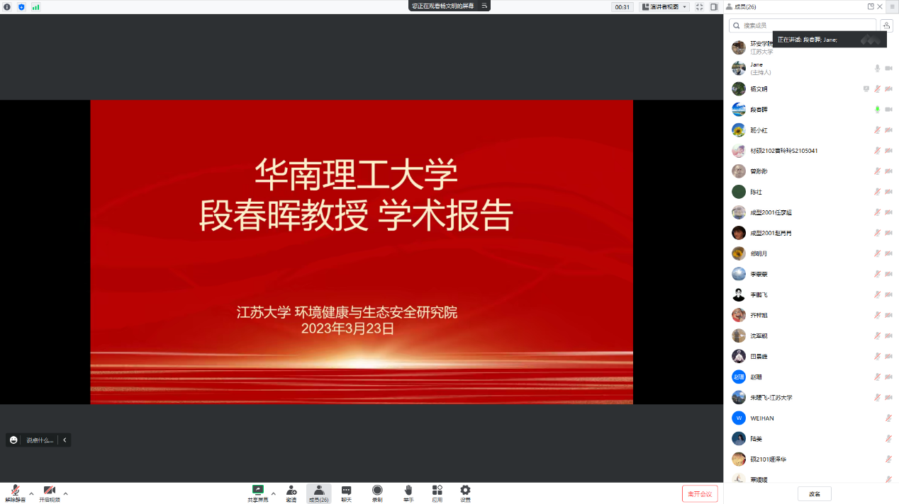3月23日上午,华南理工大学段春晖教授应环境健康与生态安全研究院邀请,为AV片师生开展题为“高性能低成本有机太阳电池关键材料研究”的学术报告。报告会由研究院徐婉珍院长主持,环境、材料、化学、机械、电气等相关专业的教师和学生参加了此次学术报告会。