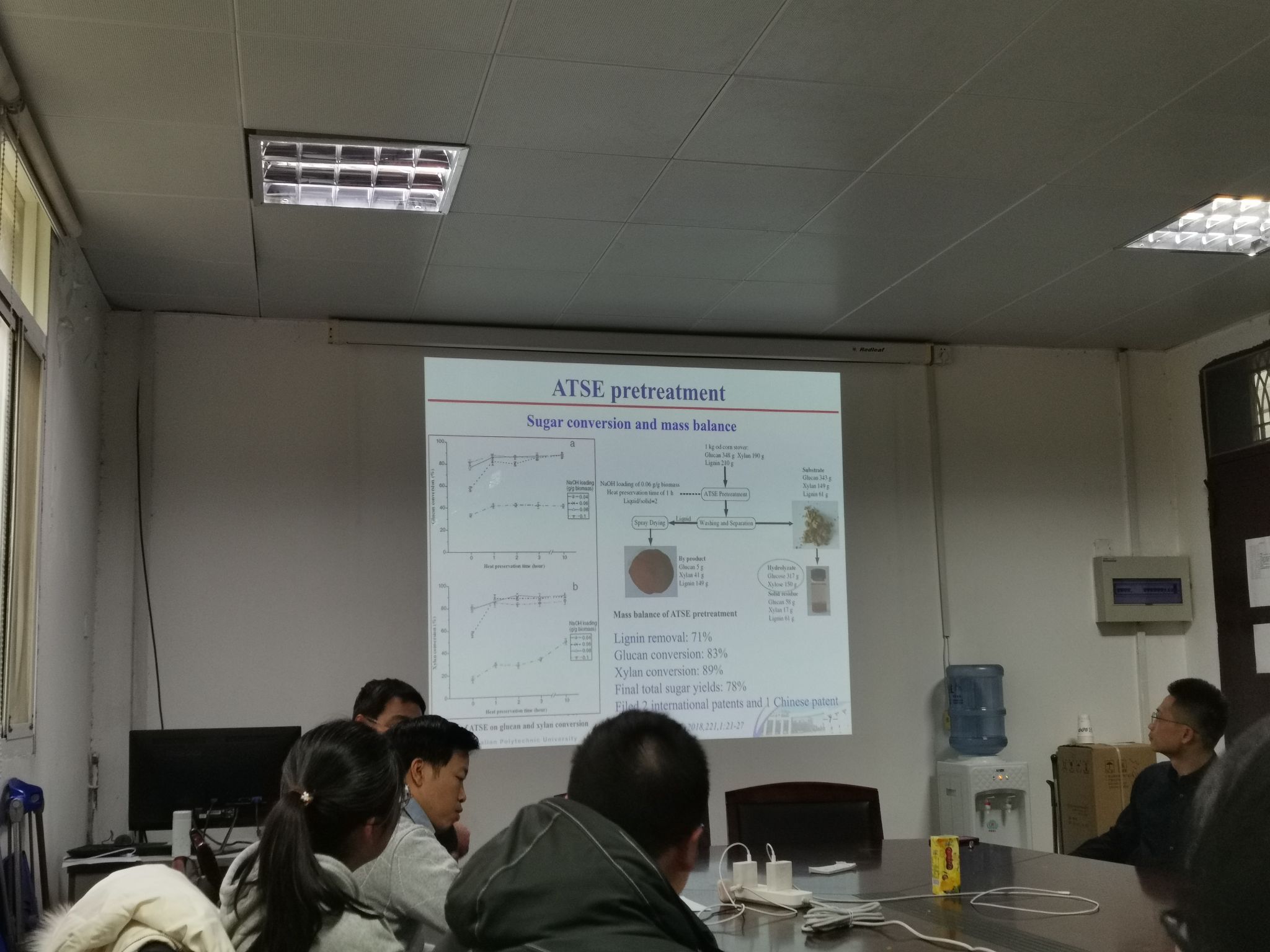 王海松教授应邀为AV片师生做了题为“木质素原料的预处理分离及高效利用”的学术报告。王海松教授介绍了其团队近年来在木质纤维生物炼制领域的原料预处理分离、纤维素、半纤维素及木质素综合利用等方面的最新研究进展。会后,王海松教授与参会师生就报告内容、研究心得等进行了深入交流。