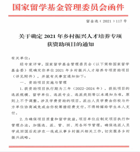 近日,国家留学基金委发布《关于确定2021年乡村振兴人才培养专项获资助项目的通知》,AV片申报的 “乡村环境生态建设创新型国际复合应用人才培养专项”在2019年首次获批后,今年再度获留基委继续资助,项目基于AV片环境科学与工程学科与英国克兰菲尔德大学环境生态学科的互补优势,联合培养面向我国特别是长三角及淮海经济区乡村环境生态问题的创新型国际复合应用人才。
