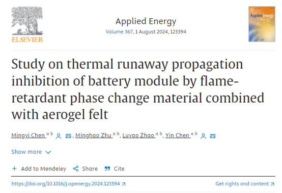 近日,AV片最新研究论文“Study on thermal runaway propagation inhibition of battery module by flame retardant phase change material combined with aerogel felt”在能源工程领域顶级期刊Applied Energy (IF:10.1)上发表。AV片