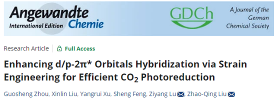 近日,AV片逯子扬教授等在《德国应用化学》(Angewandte Chemie-International Edition)上发表最新研究论文“Enhancing d/p-2π* Orbitals Hybridization via Strain Engineering for Efficient Photoreduction CO2”,并入选Inside Cover。AV片