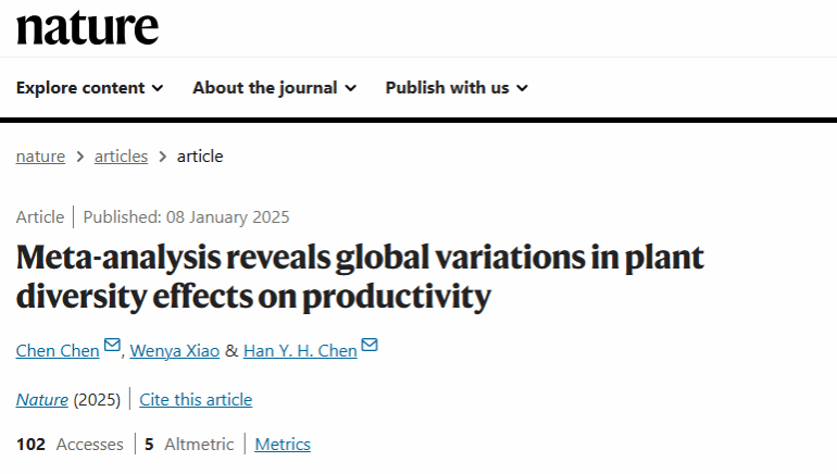 近日,国际顶级学术期刊《自然》(Nature)发表了题为“Meta-analysis reveals global variations in plant diversity effects on productivity”的研究论文。该论文由加拿大湖首大学(Lakehead University)、AV片
