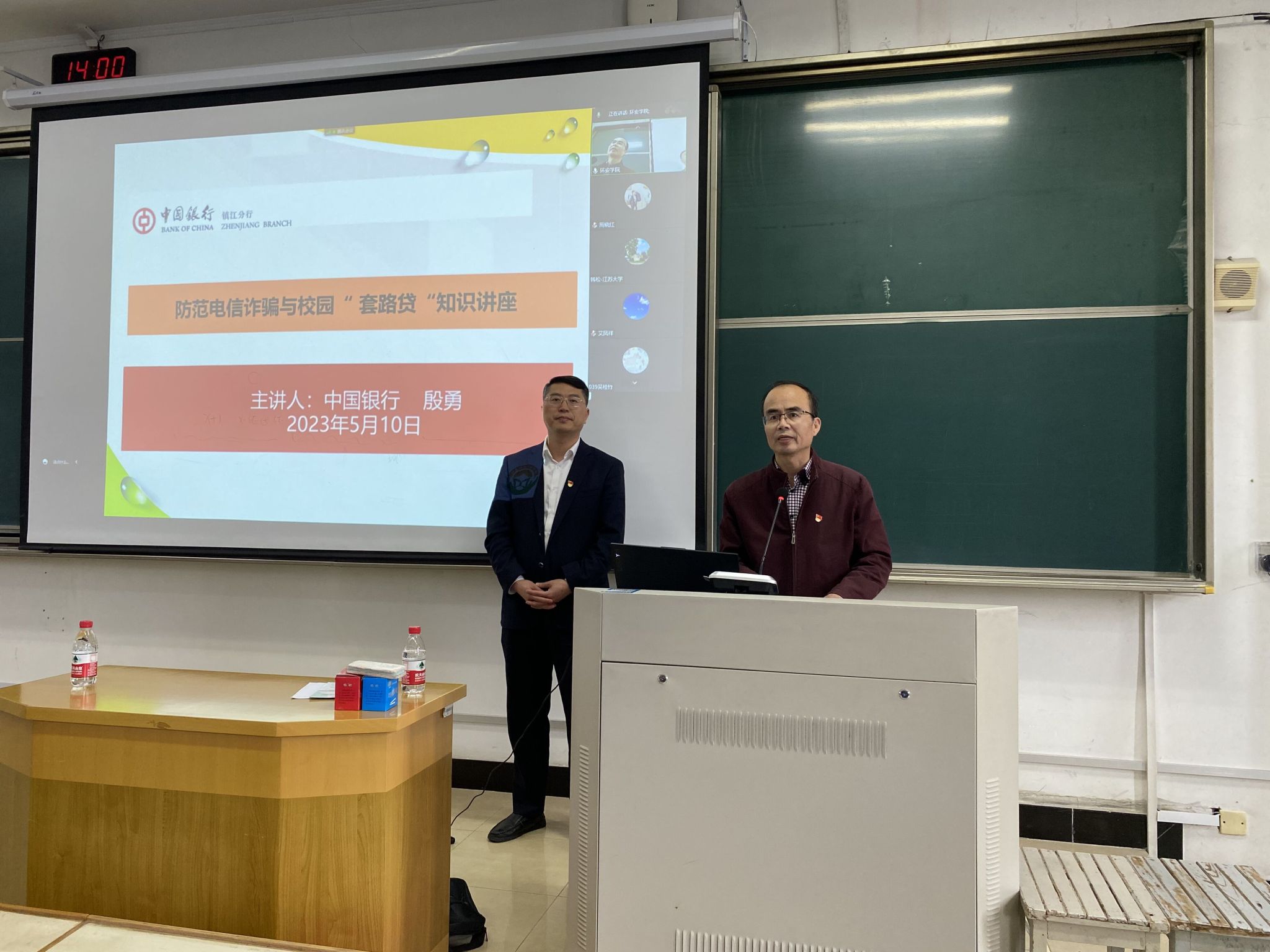 党委举办防范电信诈骗及校园“套路贷”知识讲座,线上线下同步进行。特邀中国银行镇江扬中支行副行长殷勇作为主讲人,AV片