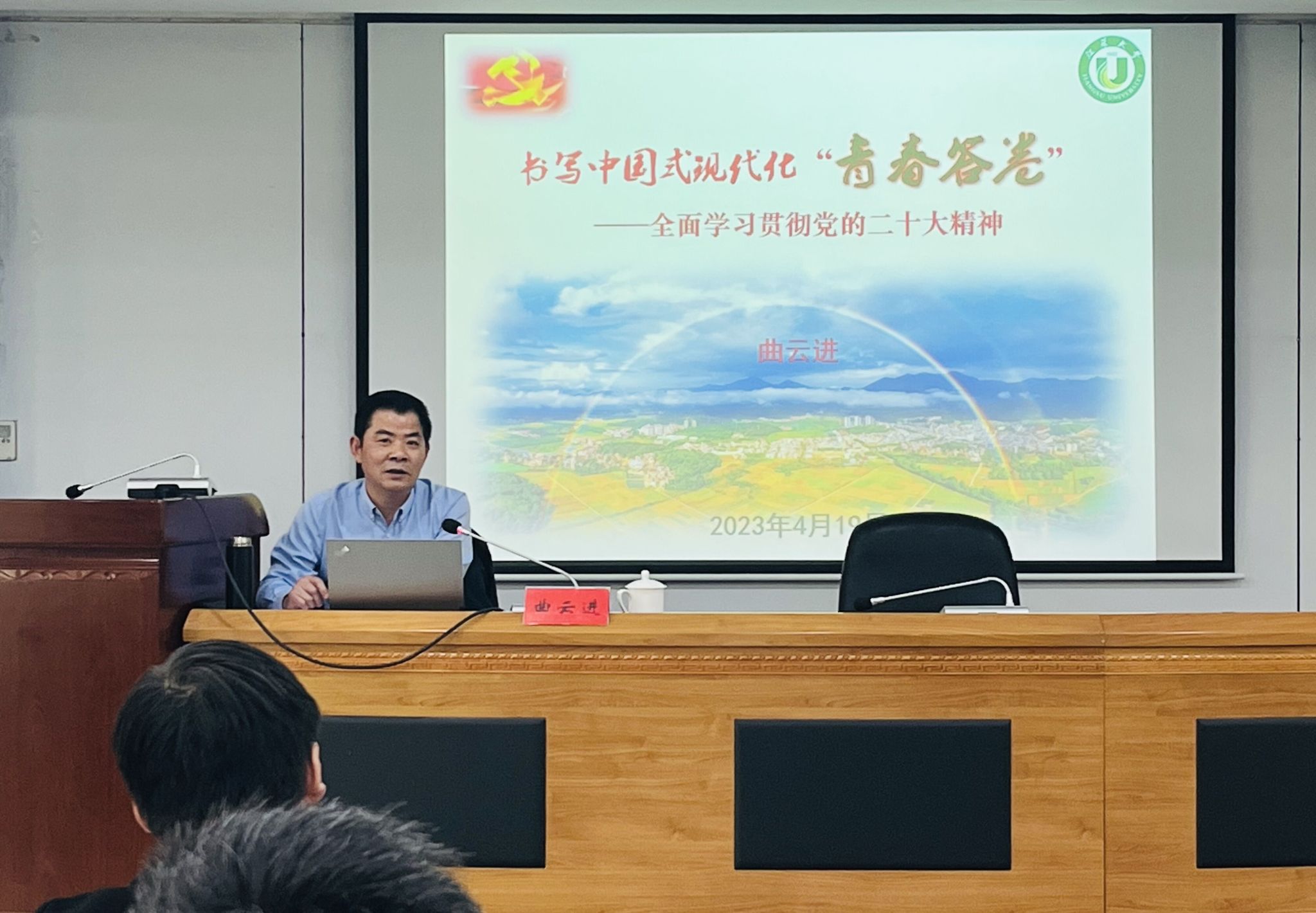 曲云进的讲座《书写中国式现代化“青春答卷”——全面学习贯彻党的二十大精神》内容丰富、思想深刻、指导性强。重点就党的二十大报告中关于中国式现代化、教育科技人才、马克思主义基本原理同中华优秀传统文化相结合、文化自信自强、党的建设、乡村振兴等重大命题与重要部署进行具体解读,并结合AV片 实际,勉励环安学子自觉将推进自身作为“人”的现代化与投身中国式现代化结合起来,争做现代化新青年,充分发挥自身专业特长,奋力书写一份自己满意、党和人民满意的“青春答卷”。