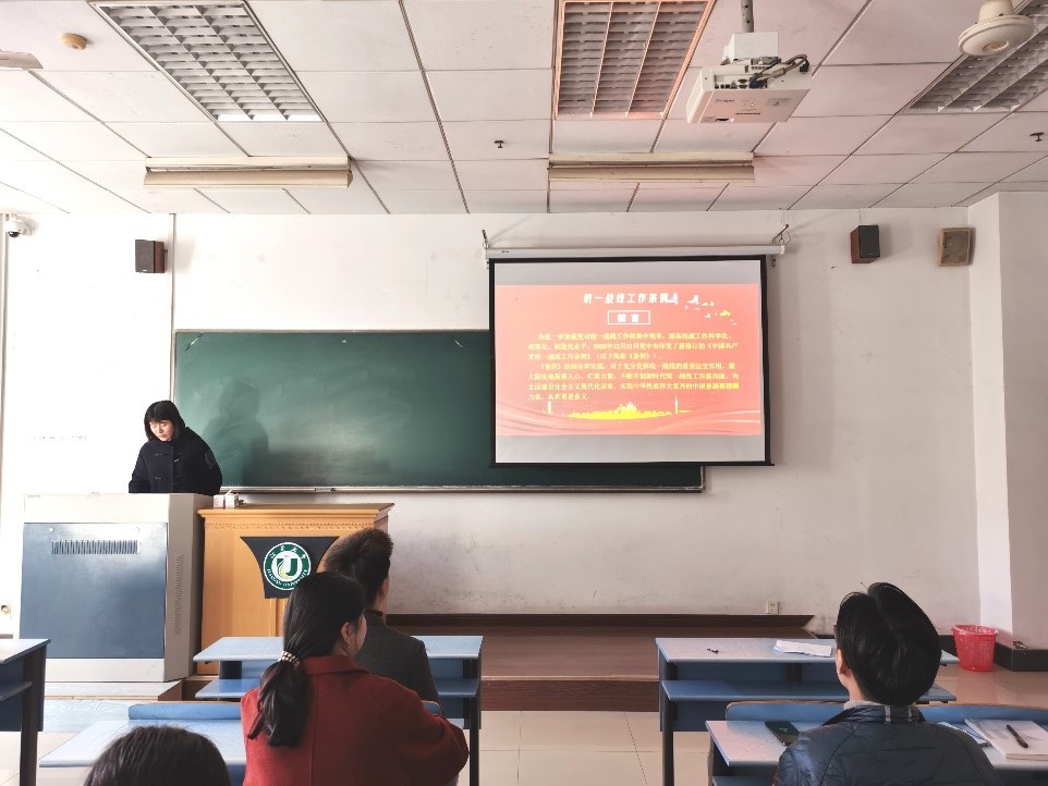 学习会上,支部党员薄妍雯同志就《条例》的修订背景、修订意义、主要内容、贯彻落实等方面进行了解读,生动阐述了新时代统一战线工作的总体要求和各项工作规定等内容。李同庆、闵刚、唐鹏等围绕学习主题作重点发言,与会党员依次发言进行交流讨论。最后,李同庆强调,全体党员要立足新的历史方位和使命任务,深刻把握国内外形势新变化对统一战线事业发展的新要求,深刻认识新时代统一战线在党和国家事业发展全局中的重要地位作用。