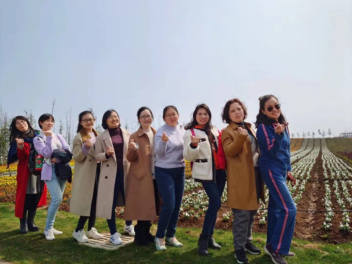 大家在花海中漫步,欣赏着美景,呼吸着新鲜空气,摆各种姿势和同事拍照,放松心情。此次活动不仅让女教工收获了快乐和健康,为新学期的工作积蓄能量;而且增进了女教师之间的交流,为以后的教学科研合作提供了机会。