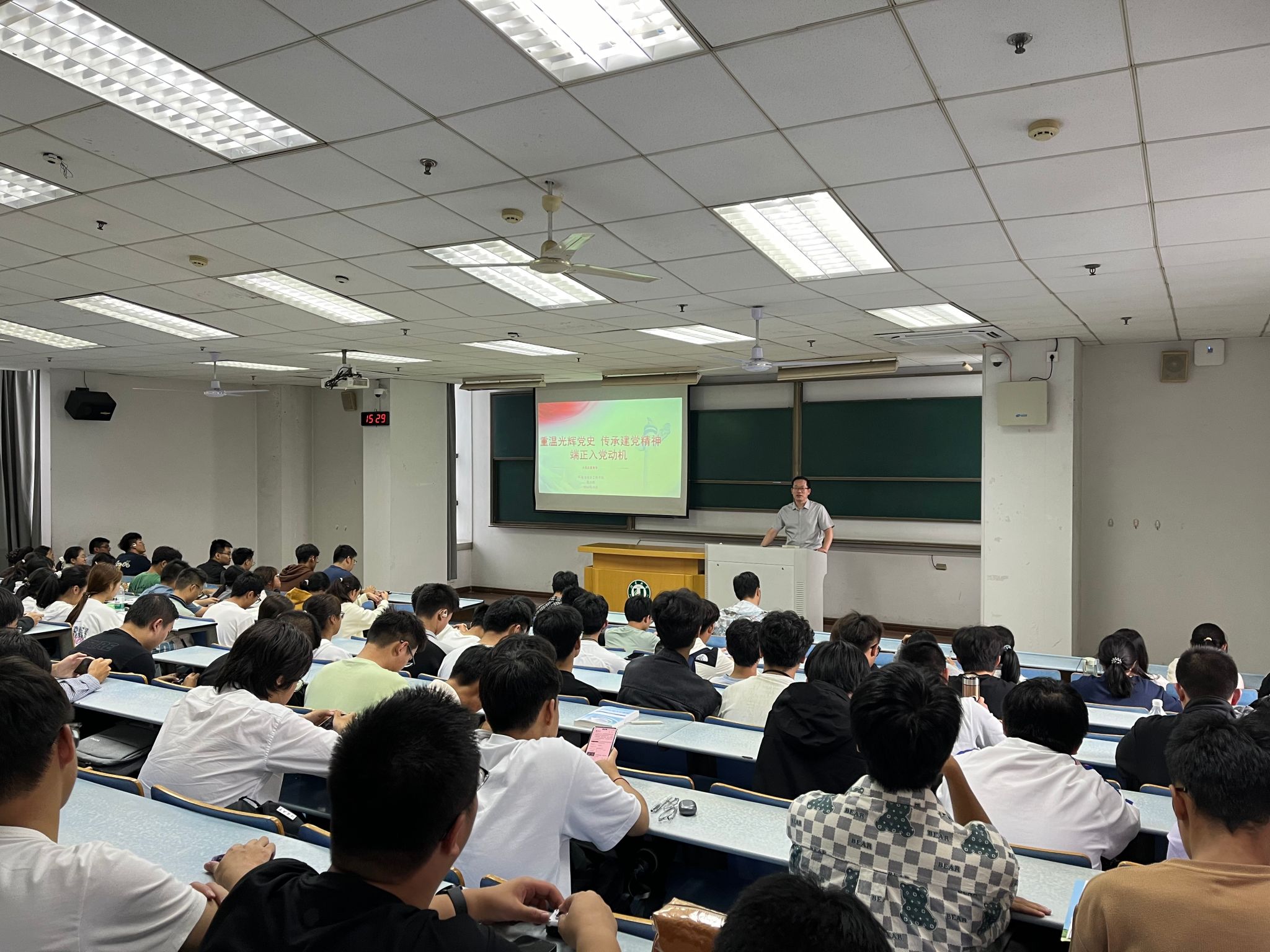 赵兴联以新生入党启蒙为主题,以当代青年的担当使命、确立正确的入党动机、党员发展的总体要求、党员发展的相关程序为主线,向2024级新生们展开了教育。